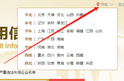 步驟2:點擊右上角“導航”,選擇想要查詢公司所在的省份。
