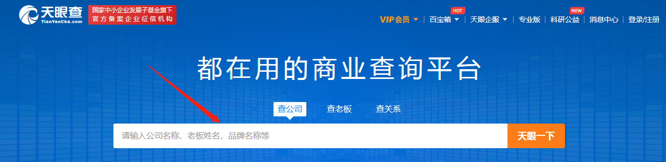 步驟1:在瀏覽器中搜索“天眼查”,點擊進入。(也可以從上方查詢入口進入查詢)
